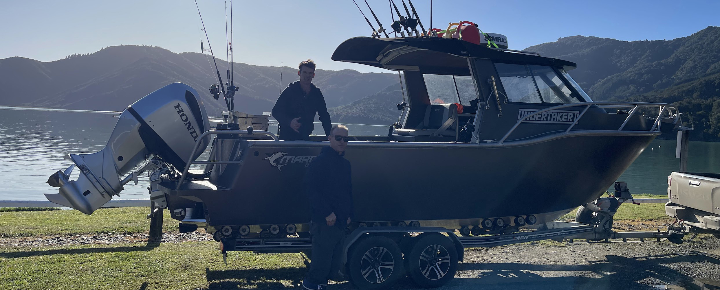 As we departed, Auckland’s skyline gave way to green fields and shimmering waters. Flying over the Cook Strait was breathtaking, with the rugged coastline and Marlborough Sounds unfolding. After arriving, Nick and I had the chance to meet Graeme Pile, who was waiting for us at the airport to help with our luggage and get us to our ride where Vaughan was waiting patiently. After a short drive, we arrived at our accommodation, which was with one of Vaughan’s good friends. We quickly got our gear organised and prepped for our first fishing trip out of Blenheim. The weather was absolutely perfect, clear skies and calm waters, making it an ideal time to cast our lines before the sun went down.